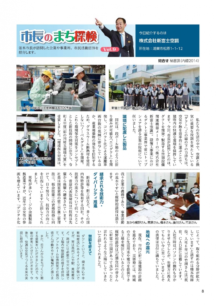 鴻巣市広報の「市長のまち探訪」取材の為、本社工場へ並木鴻巣市長が来社されました。